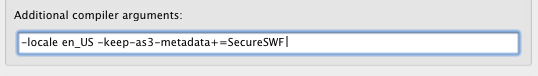 | keyFilePath | Path to secureSWF ‘key.data' file. | String | |